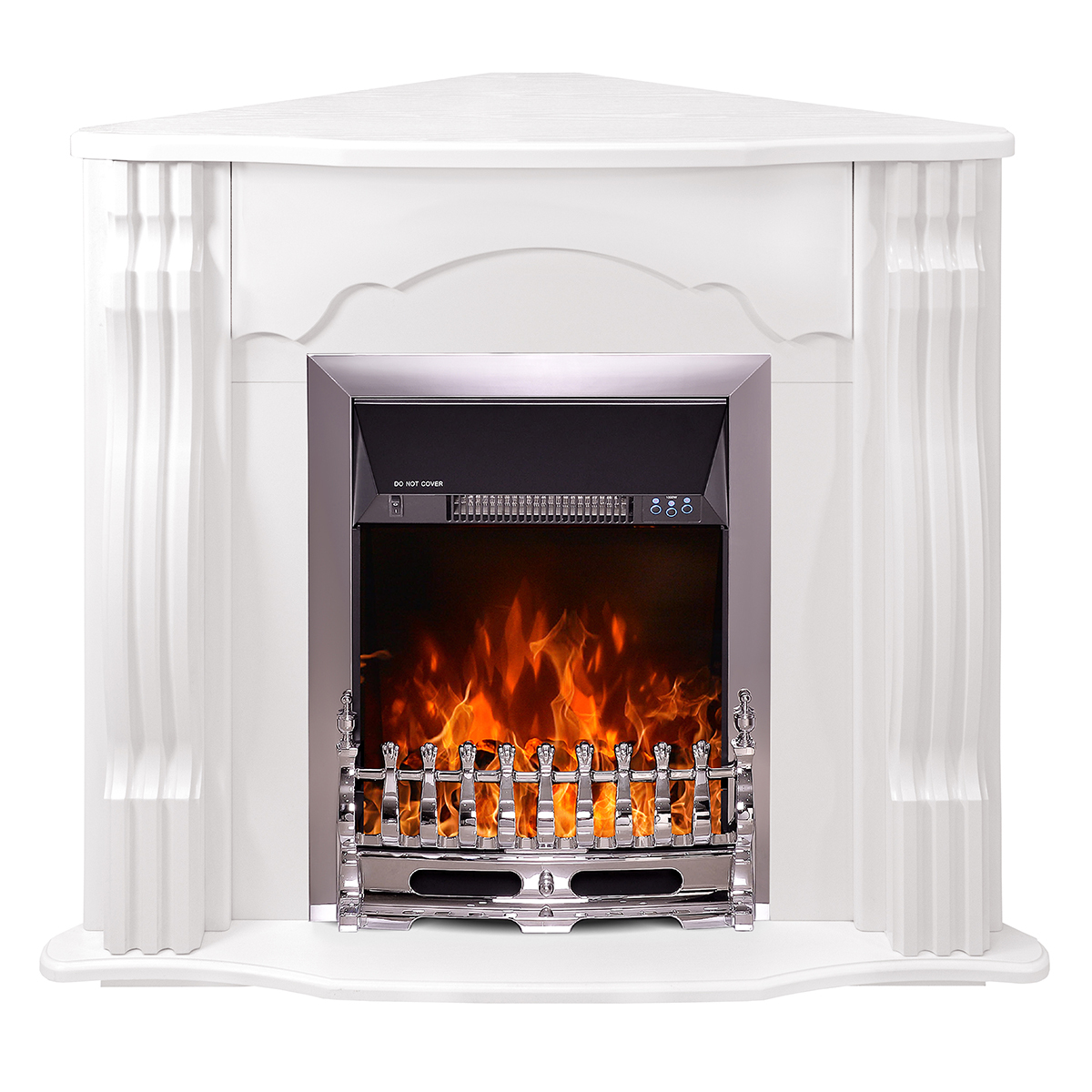 Fireplace set "Classic Corner & Galileo Chrome" is a unique model, made in a corner shape, which is ideal for placement in the corner of the room.