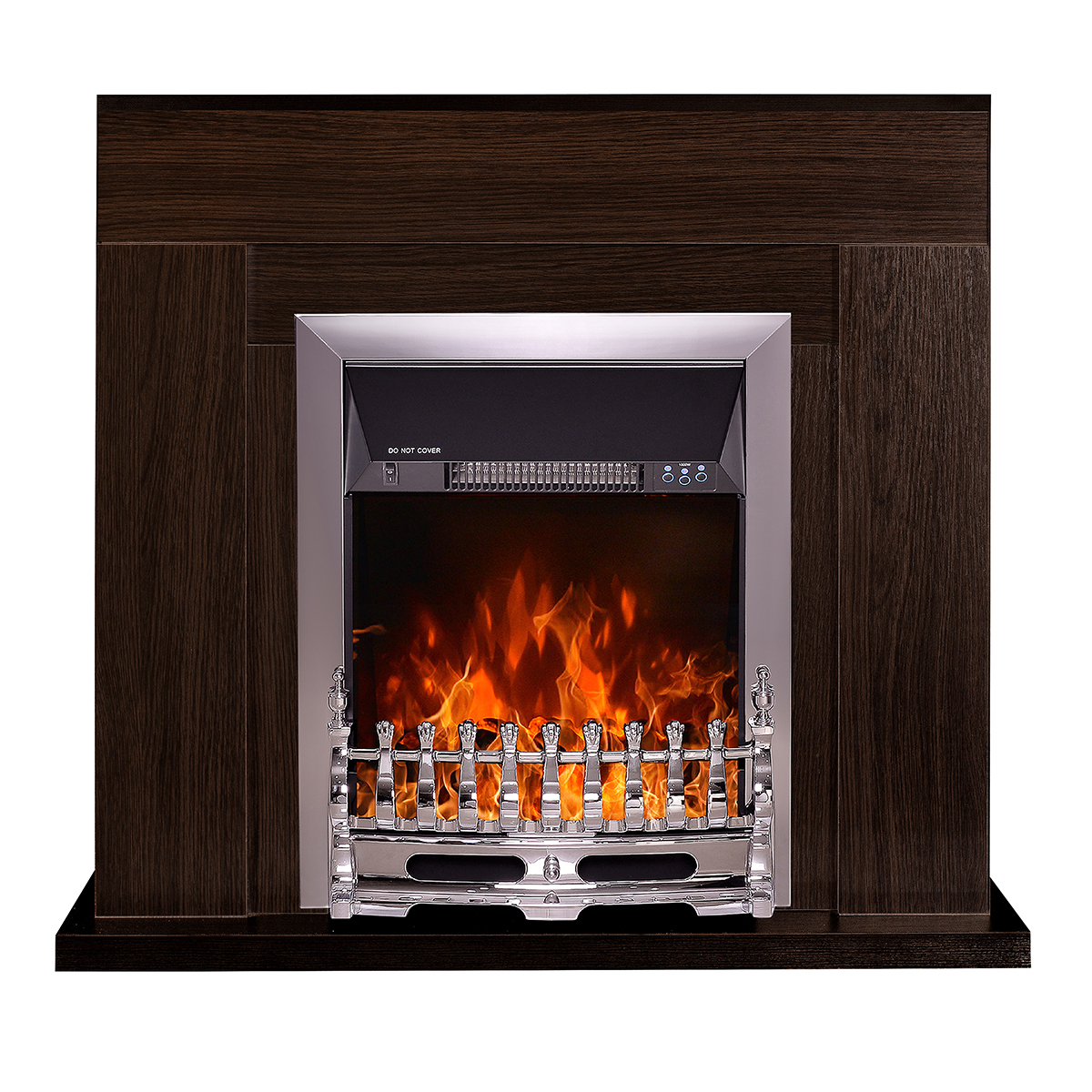 The set consists of the Agnes portal, the Galileo silver electric fireplace and a remote control. It has a simple, yet elegant look that suits any interior. The portal is made of high quality MDF with a unique construction, which reproduces the shape of natural wood. The firewood is distributed over the surface of the width of the fire, which produces an elegant effect of the artificial fireplace. The glass does not heat up at all, so there is no danger.