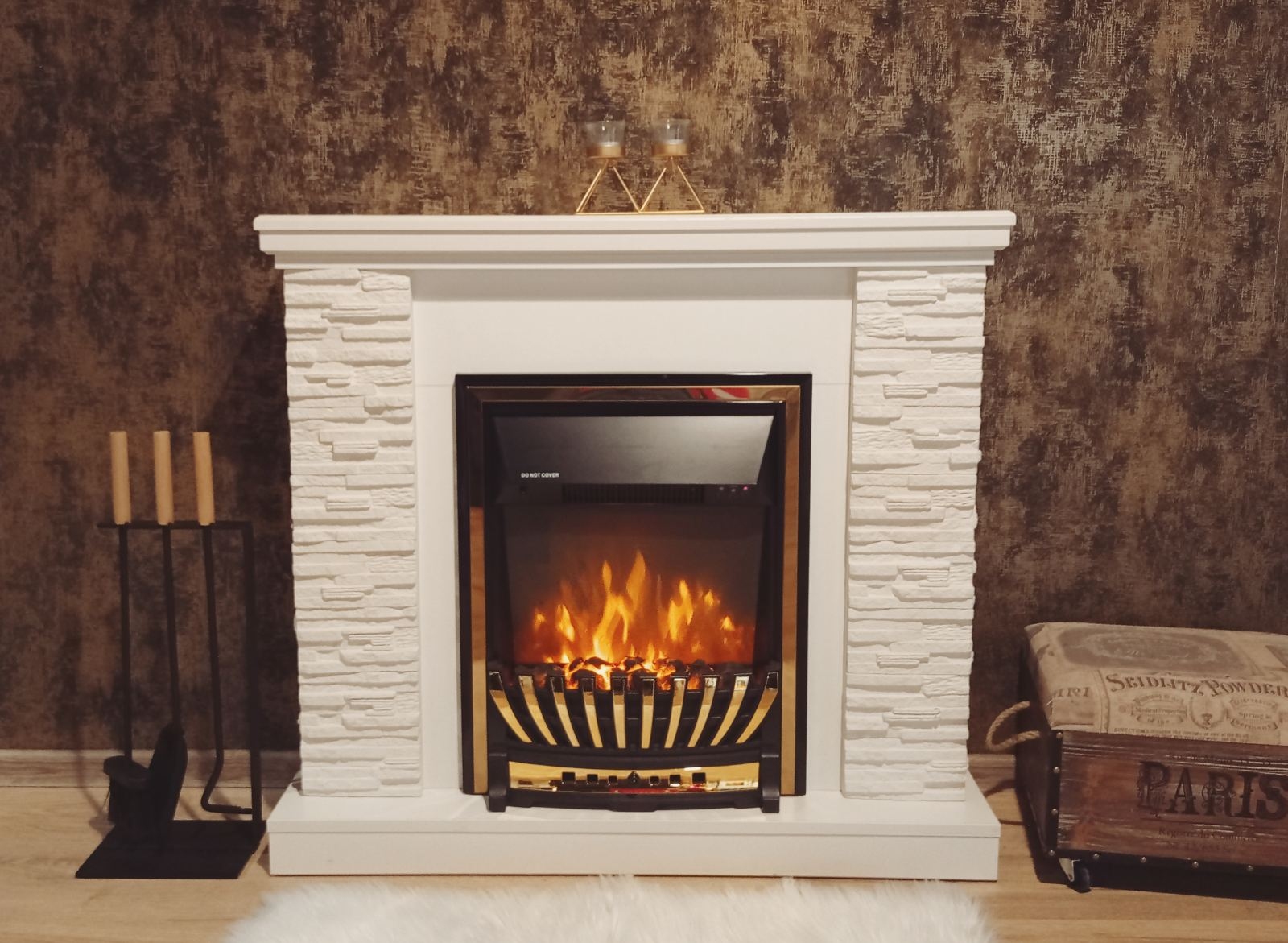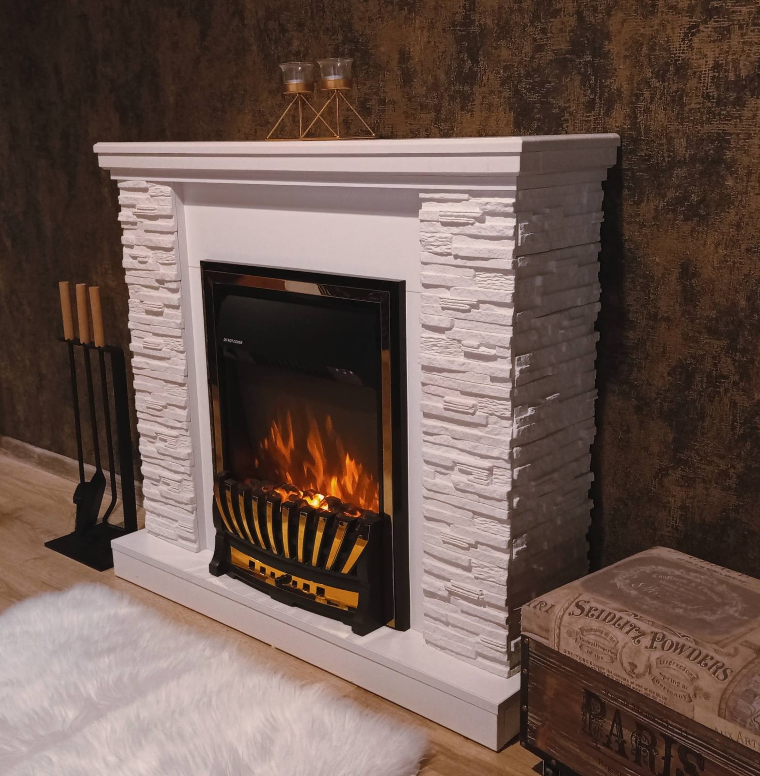 The Rock & Meridian fireplace set will perfectly fit into a country house or apartment. Portal Rock perfectly combines classic and modern styles. Made in white and wenge with artificial stone on the columns. High-quality imitation of the flame of the Meridian electric fireplace will give you a great feeling of comfort. The functionality of this model allows you to use the flame simulation mode separately from the heating mode, it has a remote control panel.