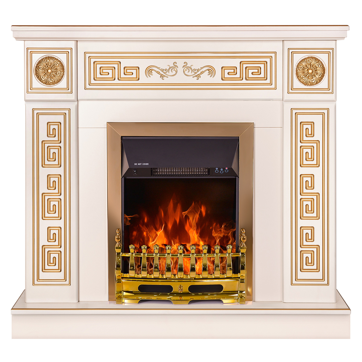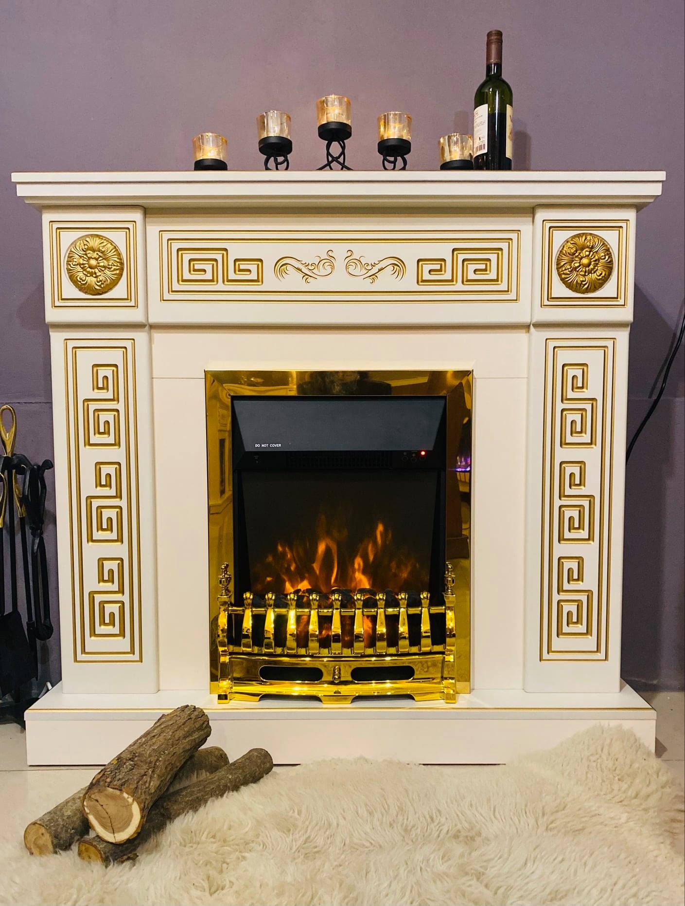 Art Flame offers high quality and a wide selection of fireplaces in Europe. Our products do not require special installation skills, they are assembled very quickly and easily according to the instructions. . Fireplace set Versailles & Galileo Gold will be the pearl of your home. Portal Versailles perfectly combines classic and modern styles. It is made in beige color, with golden patina on the columns. The functionality of the electric fireplace Galileo Gold allows it to work in two modes: heating mode and decorative mode separately. The distribution of heat throughout the room is carried out using a silent convector. This model is quite economical, its maximum power is only 30 W in simulation mode and 1-2 KW in heating mode. In addition, this model has a thermostat and at the moment of warming up to the set temperature, the heating mode automatically turns off and goes into simulation mode, when the temperature in the room drops, the fireplace automatically turns on. In addition, the Art Flame engineering team equipped the model with an automatic shutdown timer, which will allow you to program the time shutdown. An additional pleasant option is the LED backlight, which saves electricity in simulation mode, and you can adjust the different colors of the flame to suit your mood. For your convenience, the mode control monitor is displayed on the screen of the fireplace, which allows you to program the operation of the fireplace in the dark, after which the monitor disappears from the screen after 5-10 seconds. Electric fireplace Galileo Gold will warm you in the cold winter and give you a romantic mood on summer evenings. Art Flame we create warmth and comfort in your home!