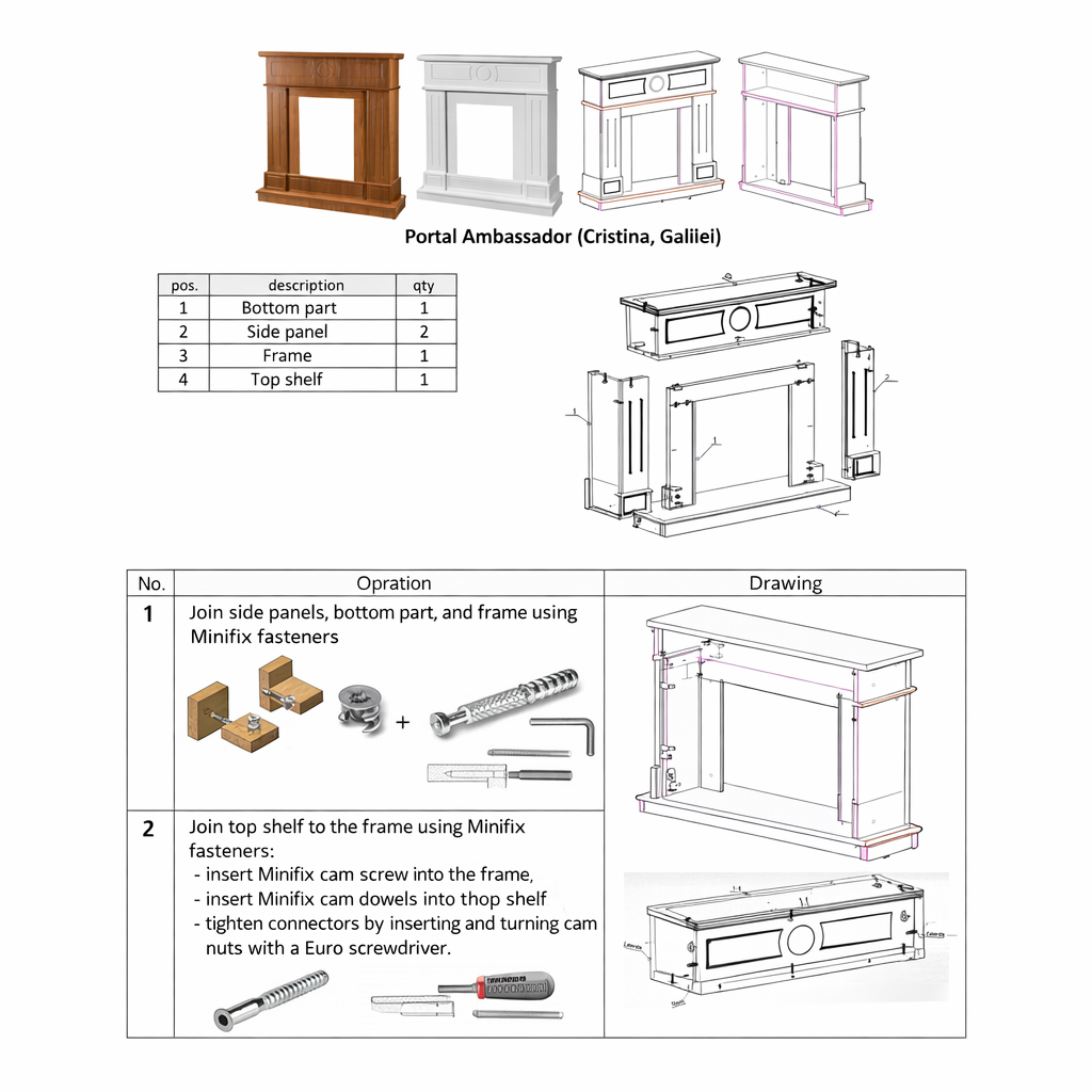 The Ambassador & Corsica fireplace set will be a wonderful decor for your home. Portal Ambassador perfectly combines classic and modern styles. It is made in white and brown with strict lines on the columns. High-quality flame imitation of electric fireplace Corsica, will give a great feeling of comfort. The functionality of this model allows you to use the flame simulation mode separately from the heating mode, it has a remote control panel and an auto-off timer.