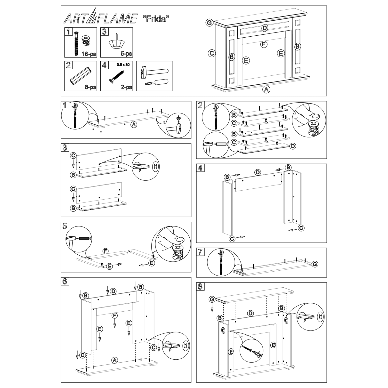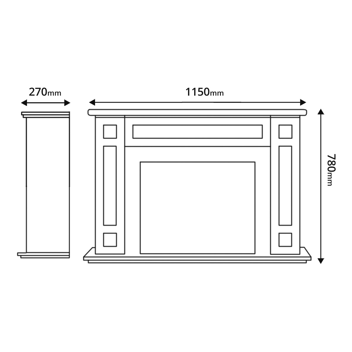 Електрокамін Frida & Mars, Art Flame, 780x1150x270 мм, 1500Вт, 2 рівні обігріву, 5 рівнів яскравості полум’я, таймер
