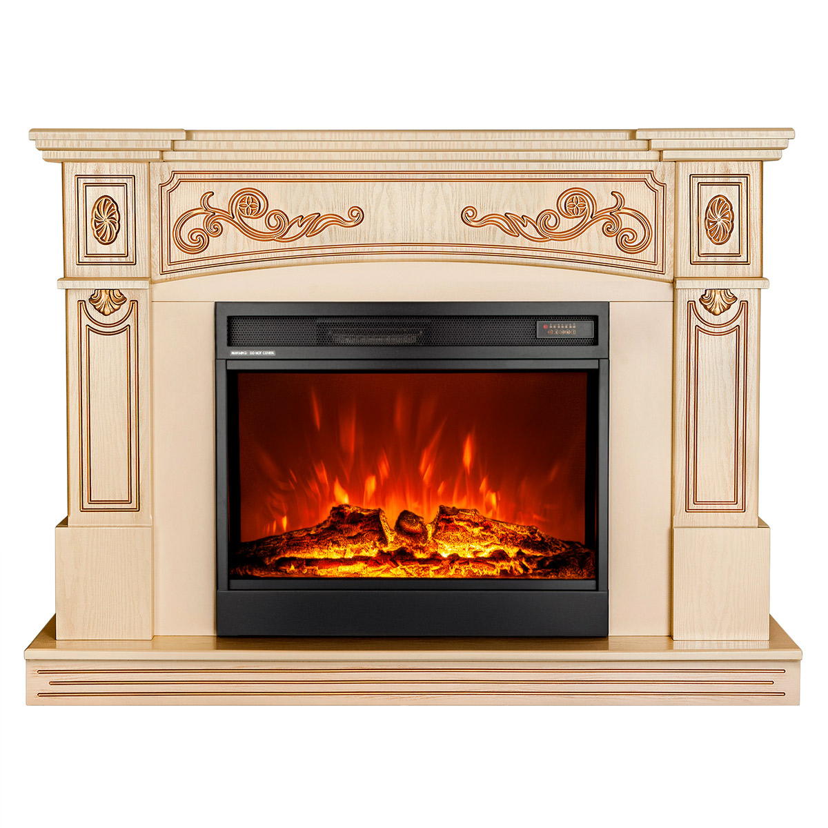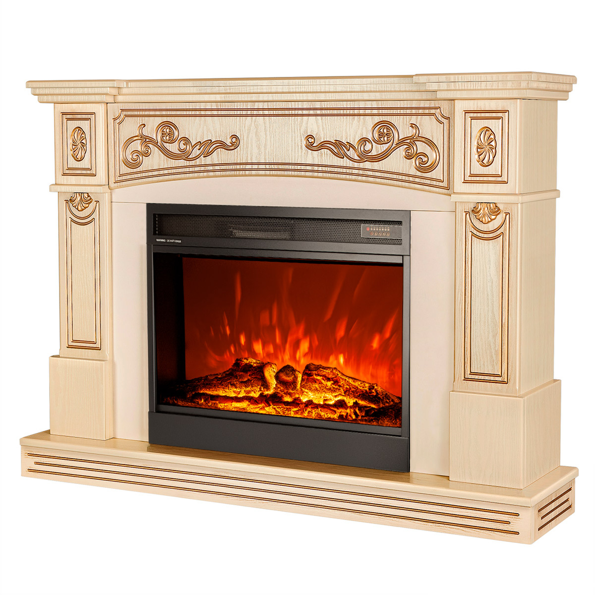 The Marmaris & Mirabella fireplace set from the European brand Art Flame is high quality, original design and the widest range in Ukraine. The Marmaris & Mirabella fireplace set will be a wonderful decoration for your home. The portal of Marmaris is made in a classic style with elegant patterns of golden patina. High-quality imitation electric fireplace flame, will give a great feeling of comfort. The functionality of this model allows you to use the flame simulation mode separately from the heating mode, it has a remote control panel and an auto-off timer.