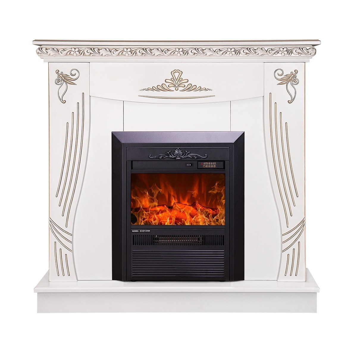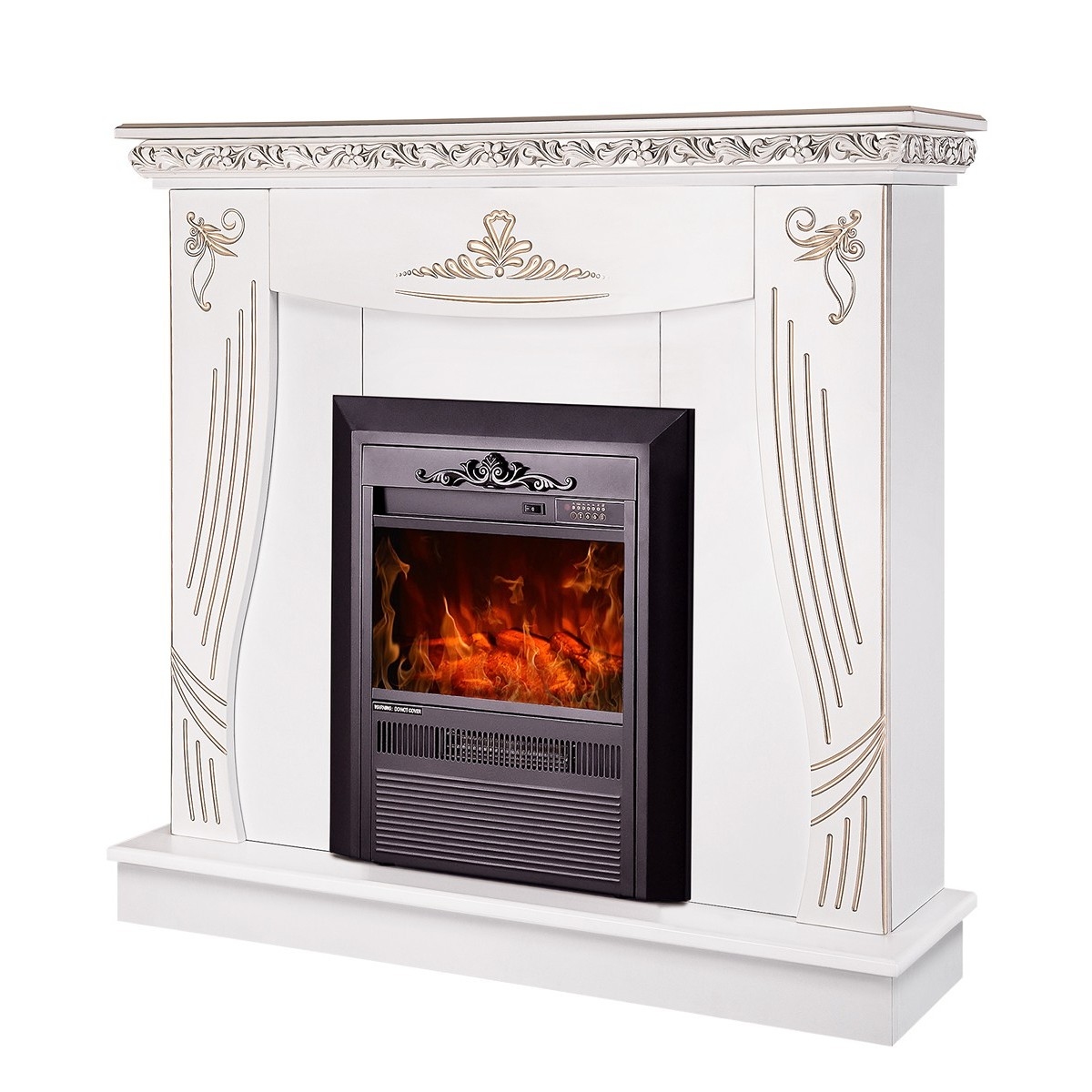 The Napoli & Cristina electric fireplace will be a wonderful decoration for your home. The Napoli portal is made in classic style, with elegant lines with silver patina. The high quality imitation of the flame of the electric fireplace Cristina will give a special feeling of comfort. The functionality of this model allows the use of the decorative flame mode separately from the heating mode.