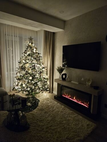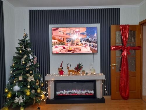 • Вміст коробки Камін / Інструкція з експлуатації / Пульт дистанційного керування / Монтажні комплекти / Кристали / Набір декоративних полі́нь / Білі гальки