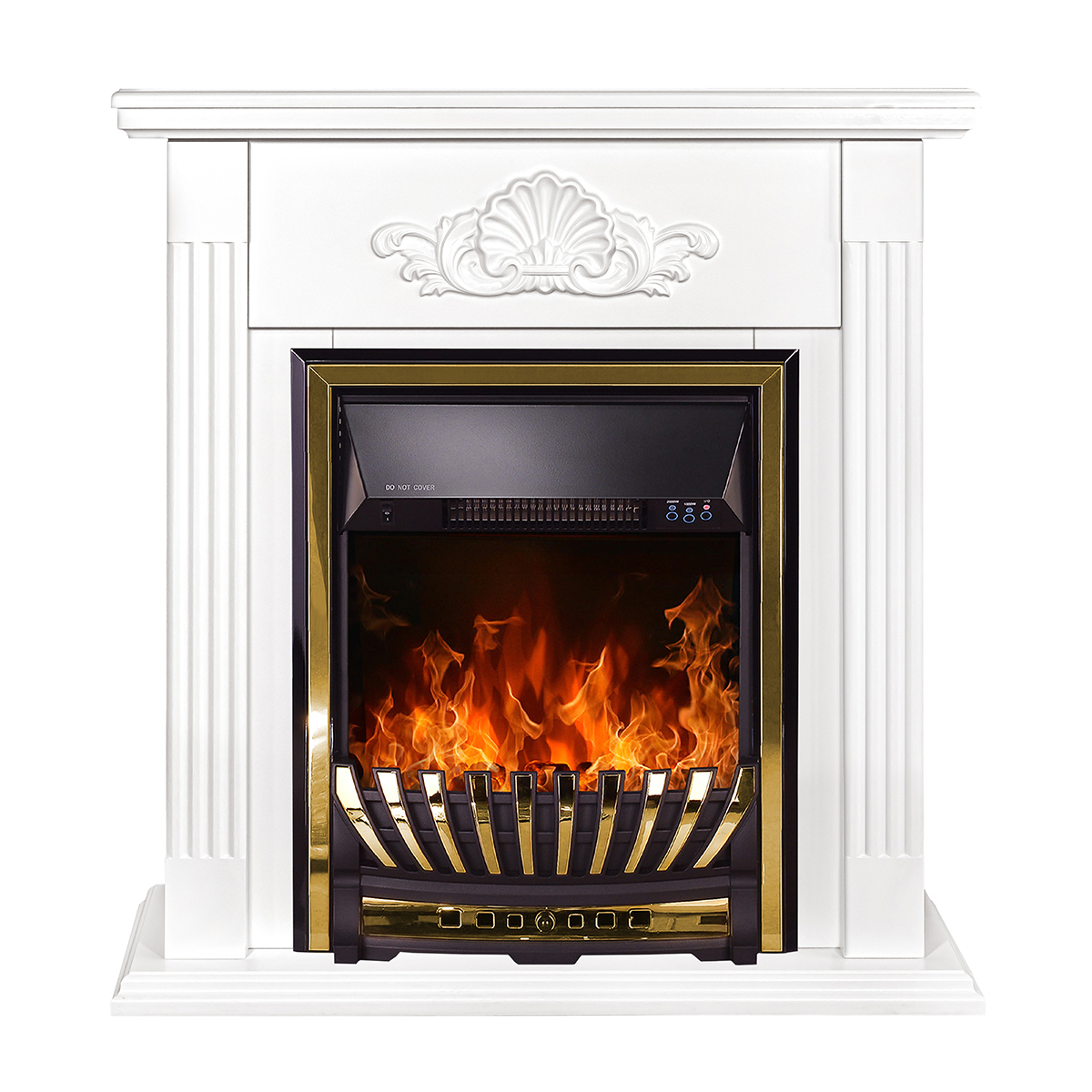 Electric fireplace "Meridian" is made in a dark design with a gold fence and frames. The device is capable of operating in 2 modes: in decorative mode and heating mode. In decorative mode, the device creates a cozy atmosphere with a high-quality simulated flame, the brightness of which can be changed using the remote control that comes with the kit. In heating mode, the electric fireplace is able to heat a room of 20m2. Overheating protection is responsible for the safety of the fireplace.