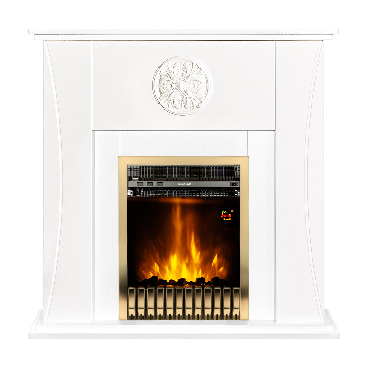 Головна сторінка Електричні каміни з оздобленням Економ Електричний камін Benedict & Gala Gold, Art Flame, 1020x1000x240 мм, 2000 Вт, термостат, 5 рівнів яскравості полум’я, таймер