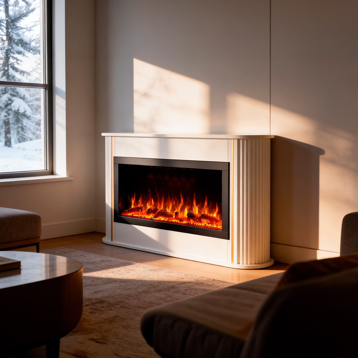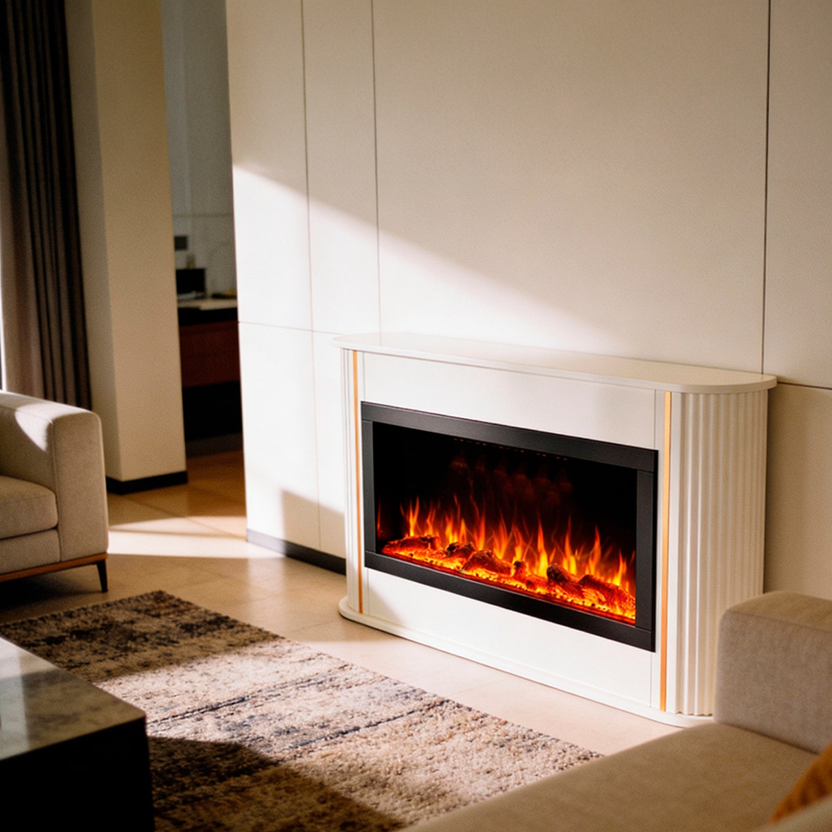 Головна сторінка Електричні каміни з оздобленням Преміум Електричний камін Rondo & Haven 40, Art Flame, 800x1400x300 мм, 1500 Вт, понад 100 комбінацій кольорів, Термостат, Дрова та кристали