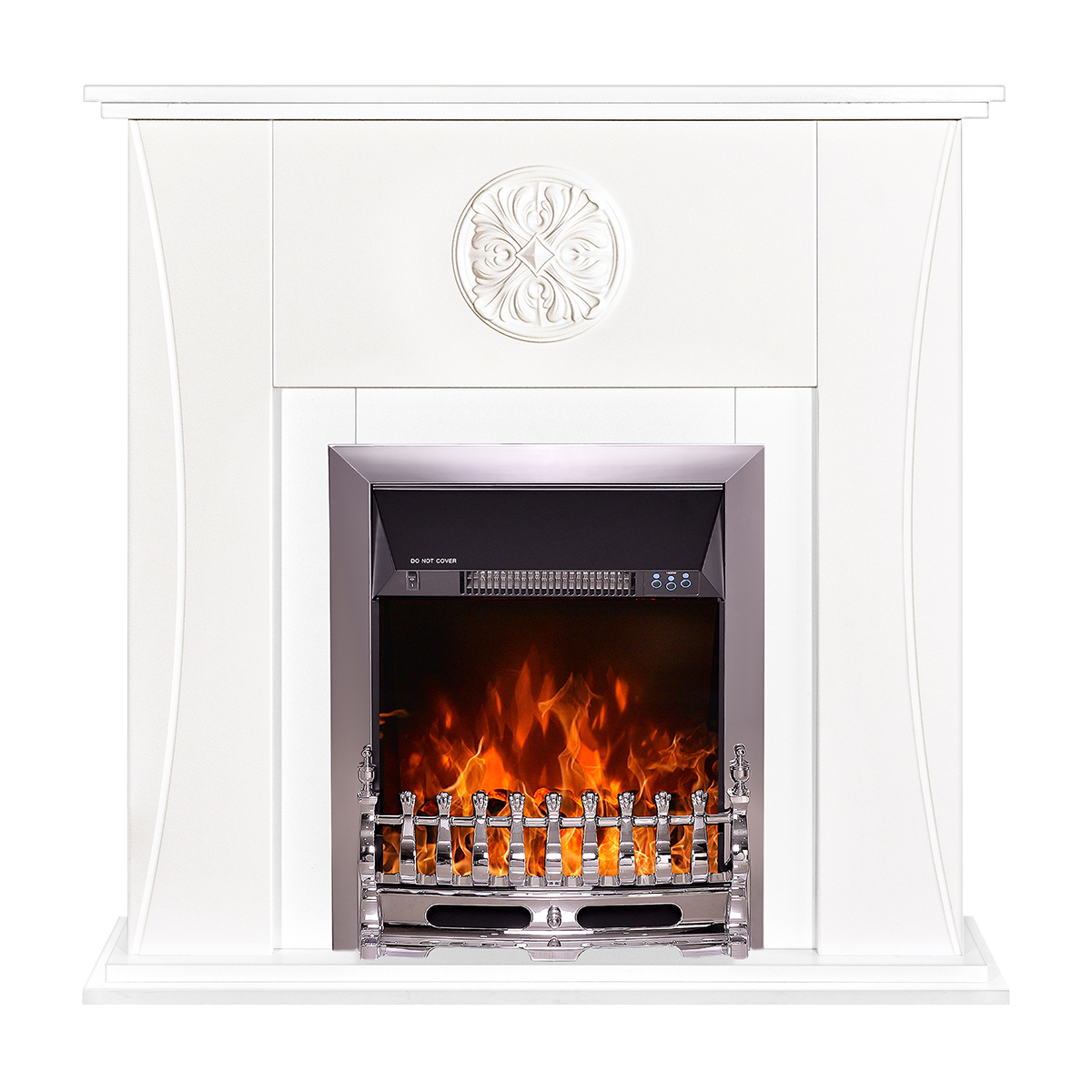Головна сторінка Електричні каміни з оздобленням Економ Електрокамін Benedict & Galileo silver, Art Flame,1020x1000x240 мм, 2000 Вт, термостат, 5 рівнів яскравості полум’я, таймер
