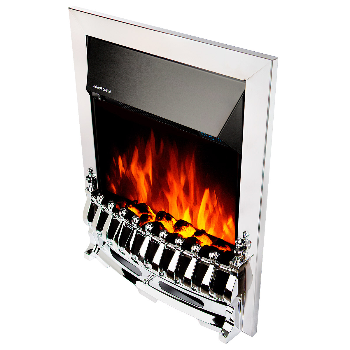 Modern Galileo silver electric fireplace with realistic flame effect, which can easily decorate your living room, bedroom or cafe. This model can be placed in the portal, embedded in the wall or in any other place, at the client's request, allowing a tolerance to the edges of 2 cm for ventilation. The functionality of the electric furnace allows it to operate in two modes: heating mode and decorative mode. The heat is distributed throughout the room, using a silent convector. This model is quite economical, its maximum power is only 2 KW. Another attractive option is the LED backlight. The Galileo silver electric fireplace will warm you in the cold winter and give you a romantic atmosphere on summer evenings.