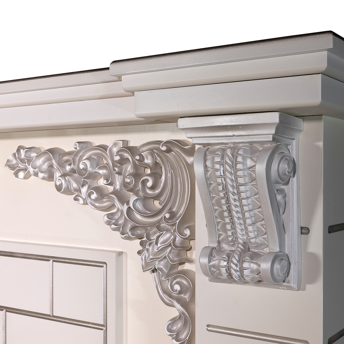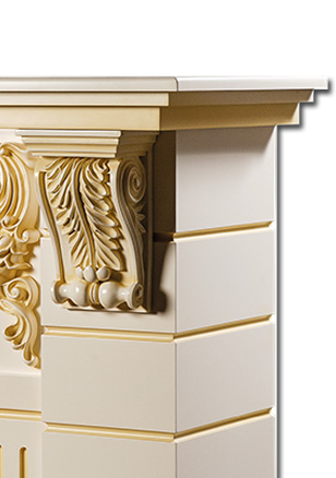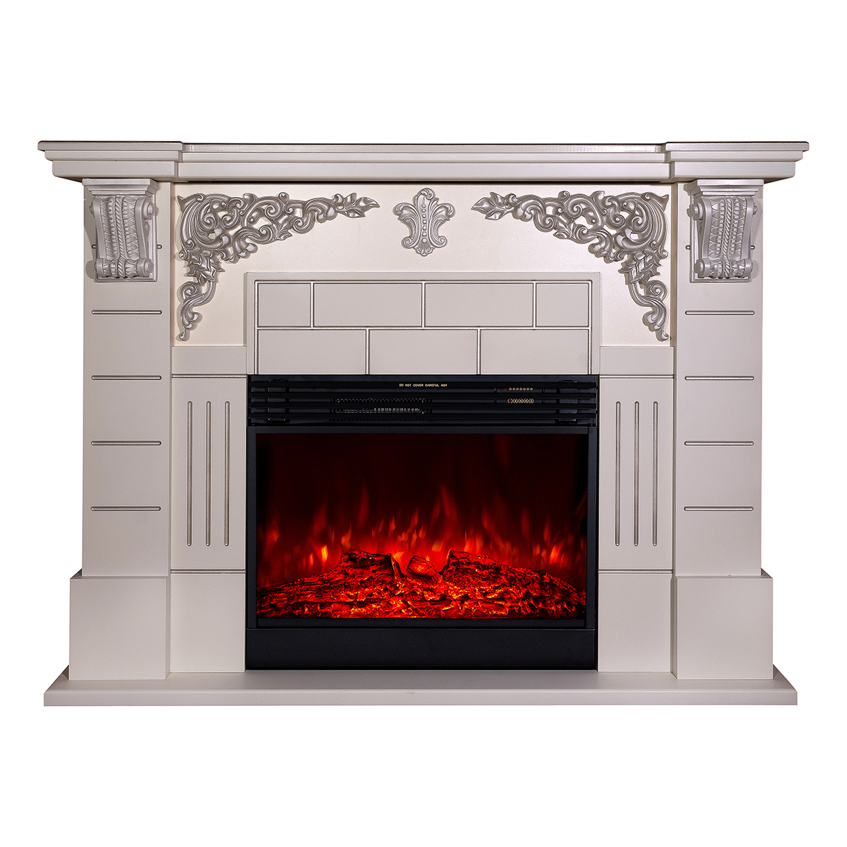 The Imperial & Mirabela fireplace set will become the pearl of your home. Portal Imperial perfectly combines classic and modern styles. It is made in white color with vanilla patina with an elegant frame on the columns. High-quality imitation of the flame of the Mirabela electric fireplace will give you a great feeling of comfort. The functionality of this model allows you to use the flame simulation mode separately from the heating mode, it has a remote control panel and an auto-off timer.
