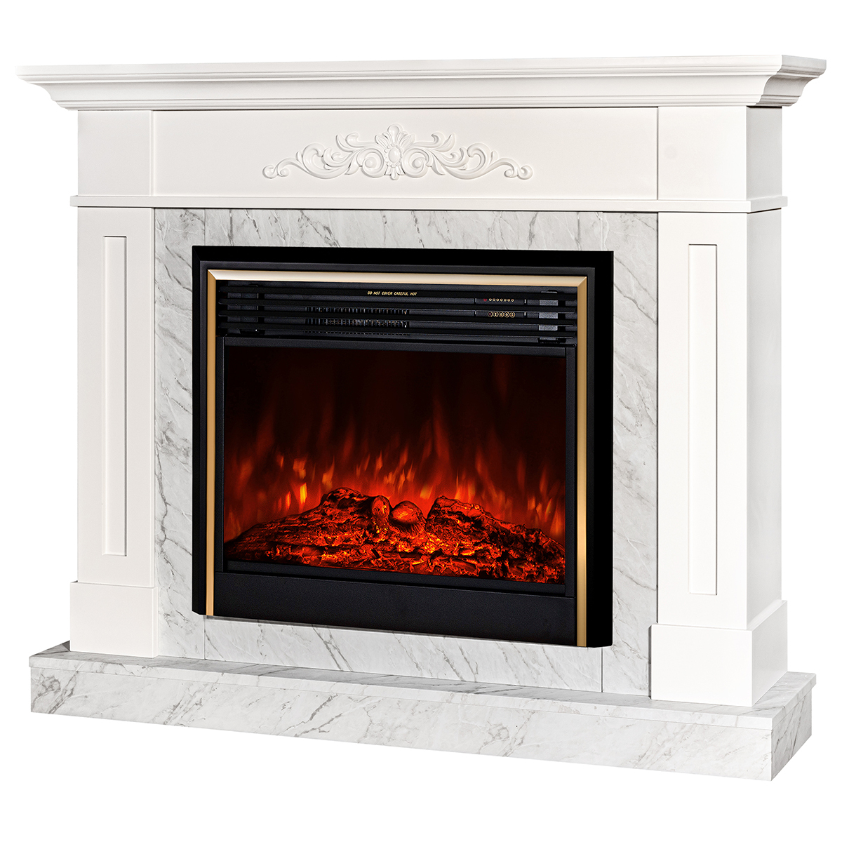 Electric fireplace "Richie" is a device made in a dark design with thin gold inserts. In decorative mode, the electric fireplace creates a believable flame simulation not only with the help of visual decoration, but also due to the new sound simulation technology. In heating mode, the device is able to heat a room of 20m2. Overheating protection is responsible for the safety of the fireplace. And also included with the fireplace set is a remote control with which you can adjust the brightness of the flame, the sound level and switch heating modes.
