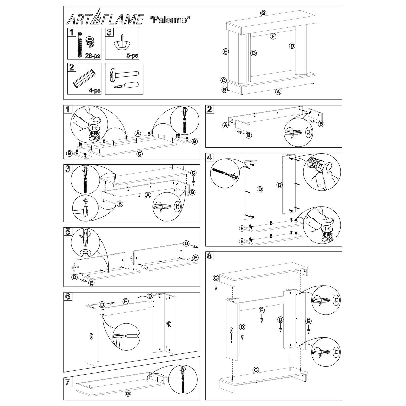 Електрокамін Palermo & Mirabella, Art Flame, 900x1150x350 мм, 1950 Вт, тріск дров, 5 рівнів яскравості полум’я, таймер