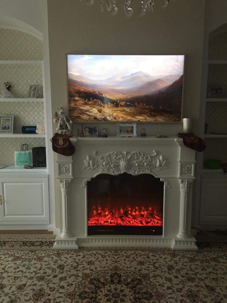 The Savage XS fireplace set is an original high quality fireplace set executed in a classic style. The naturalness of the flame will not leave anyone indifferent. Realistic burning of fire in the furnace very accurately repeats the flickering of natural flames. Firewood is evenly distributed across the entire width of the firebox, which creates a gorgeous effect of smoldering and burning logs. When the hearth is working for heating, the glass does not heat up at all. The fireplace works with and without heating, which means that you can enjoy a beautiful and bright fire at any time of the year, day or night.