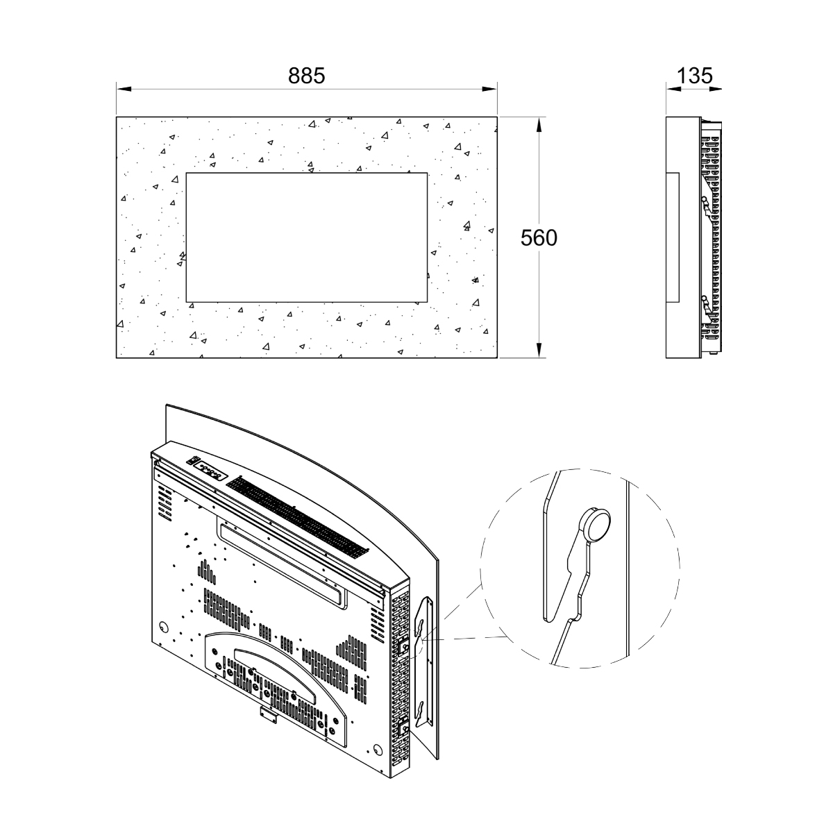 Wall-mounted electric fireplace Carlos is a modern electric fireplace with a realistic flame effect that will easily decorate your living room, bedroom or cafe. This model is easily attached to the wall, without requiring special skills or additional fasteners, everything you need is included in the kit. The functionality of the electric fireplace allows it to work in two modes: heating mode and decorative mode. The distribution of heat throughout the room is carried out using a silent convector. This model is quite economical, its maximum power is only 1.5 kW. An additional nice option is the LED backlight. Its presence gives the fire maximum credibility. Electric fireplace Carlos will warm you in the cold winter and give you a romantic mood on summer evenings.