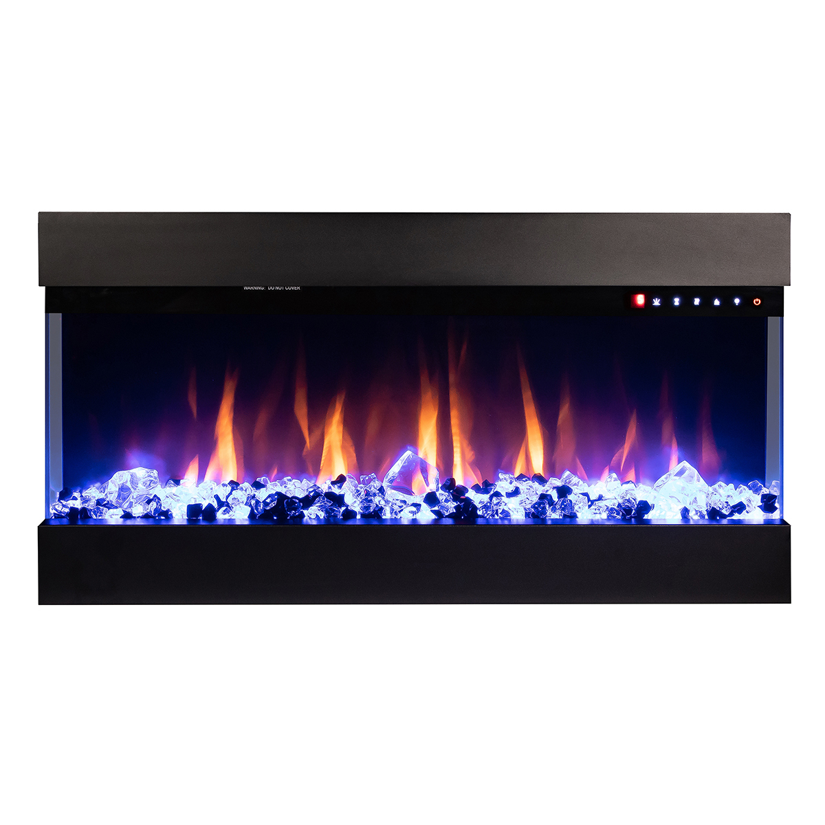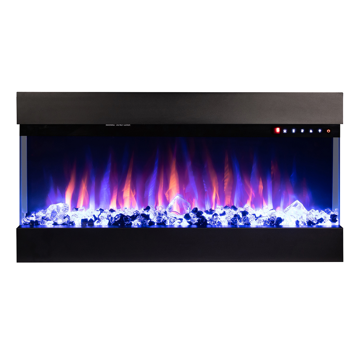 The Dallas Maxi electric fireplace applies to both built-in and wall-mounted fireplaces. The multi-colored flame is set using a control panel or a panel at the bottom of the fireplace. The simple exterior design will allow it to fit into any desired interior.